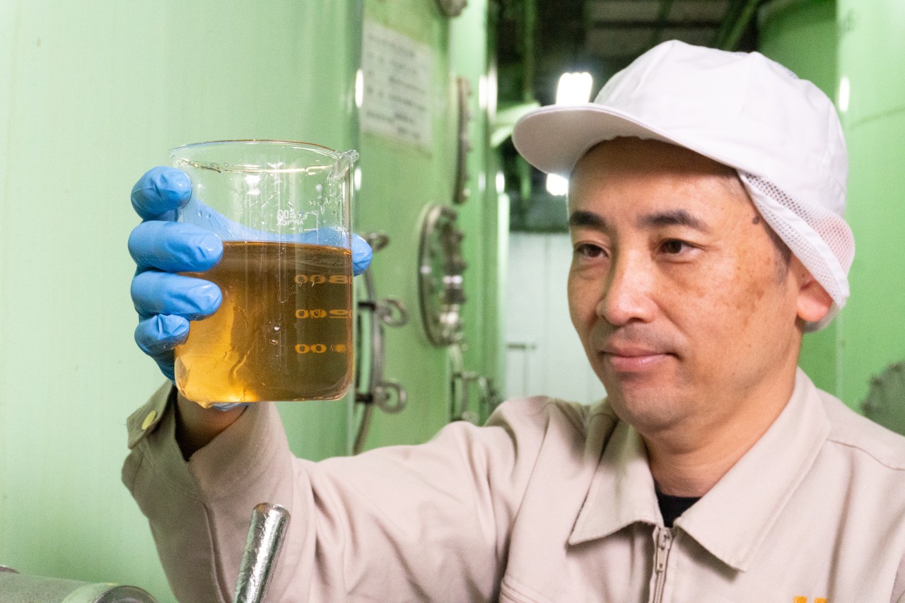 ■今年の『風味は過去最高』と仕上がりに自信を見せる梅酒杜氏。毎年違う、難逃れの今年の梅を味わってほしい。