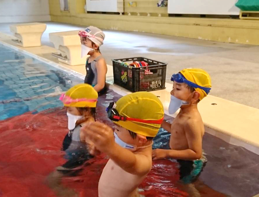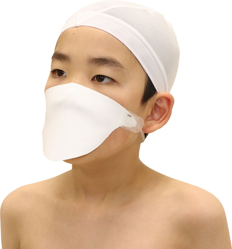 装着することでプール内での飛沫の拡散を軽減できるマスク